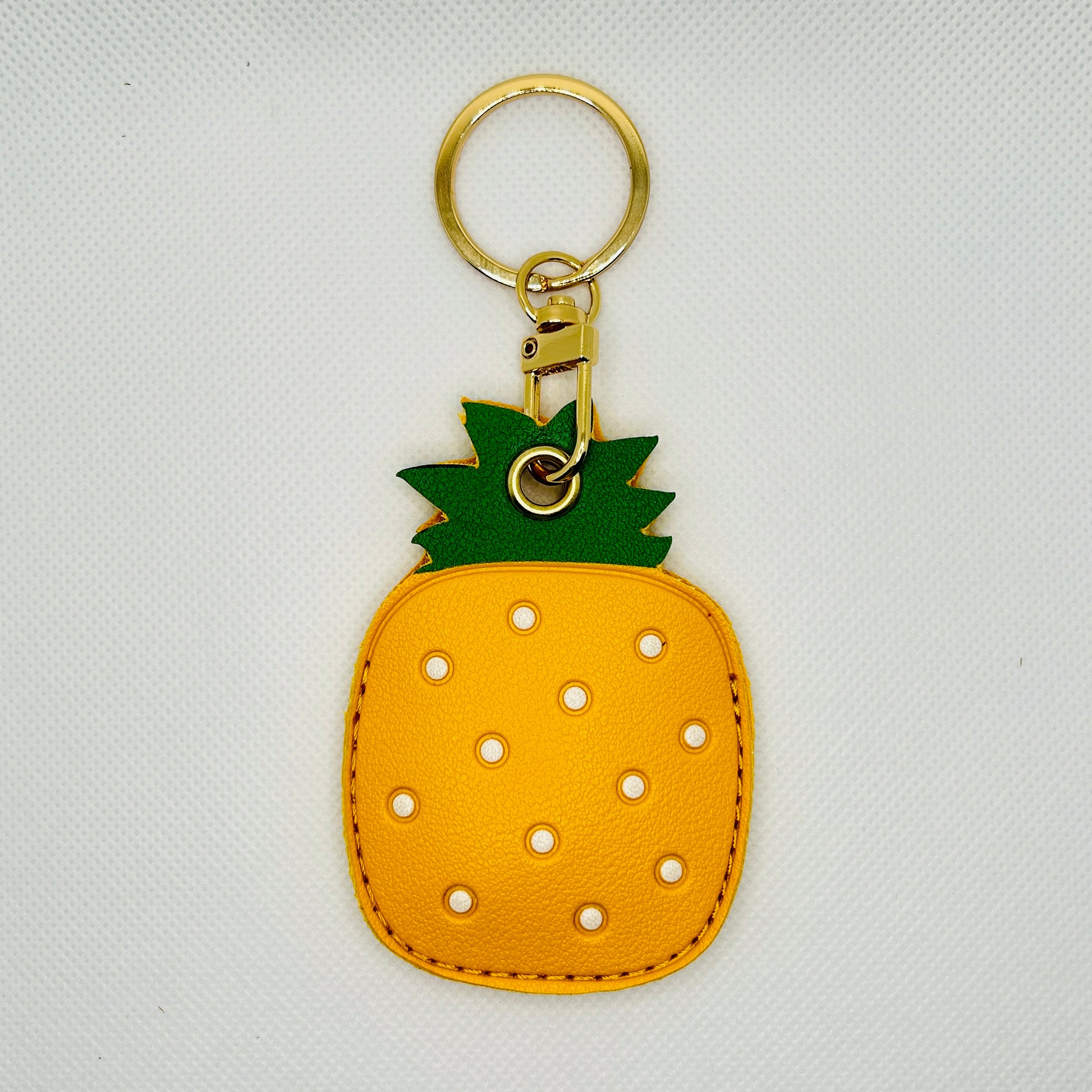 Porte-clés ananas en similicuir. Accessoire estival avec un compartiment pour AirTag ou pièces de monnaie.