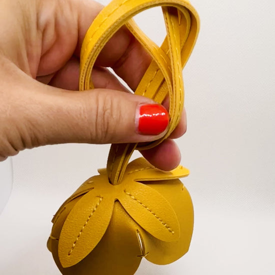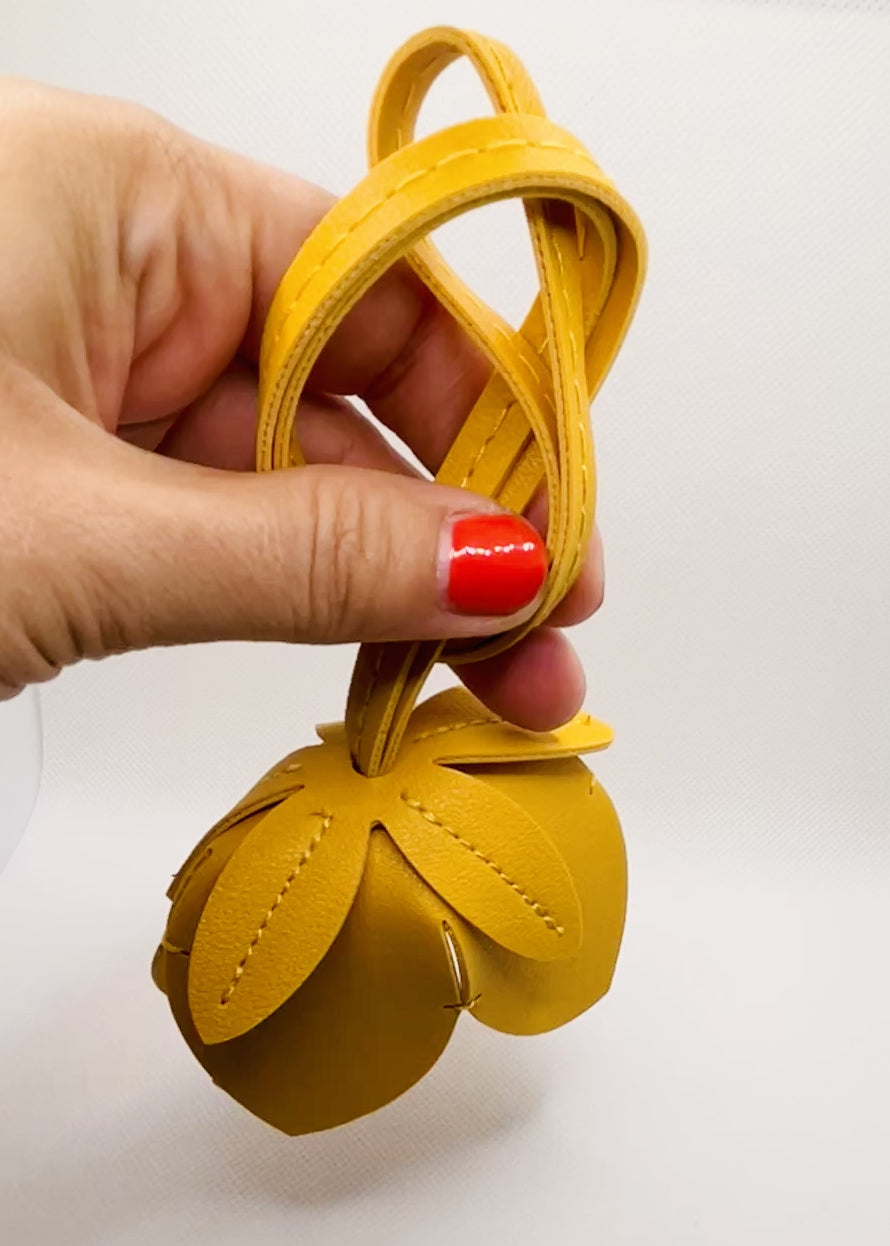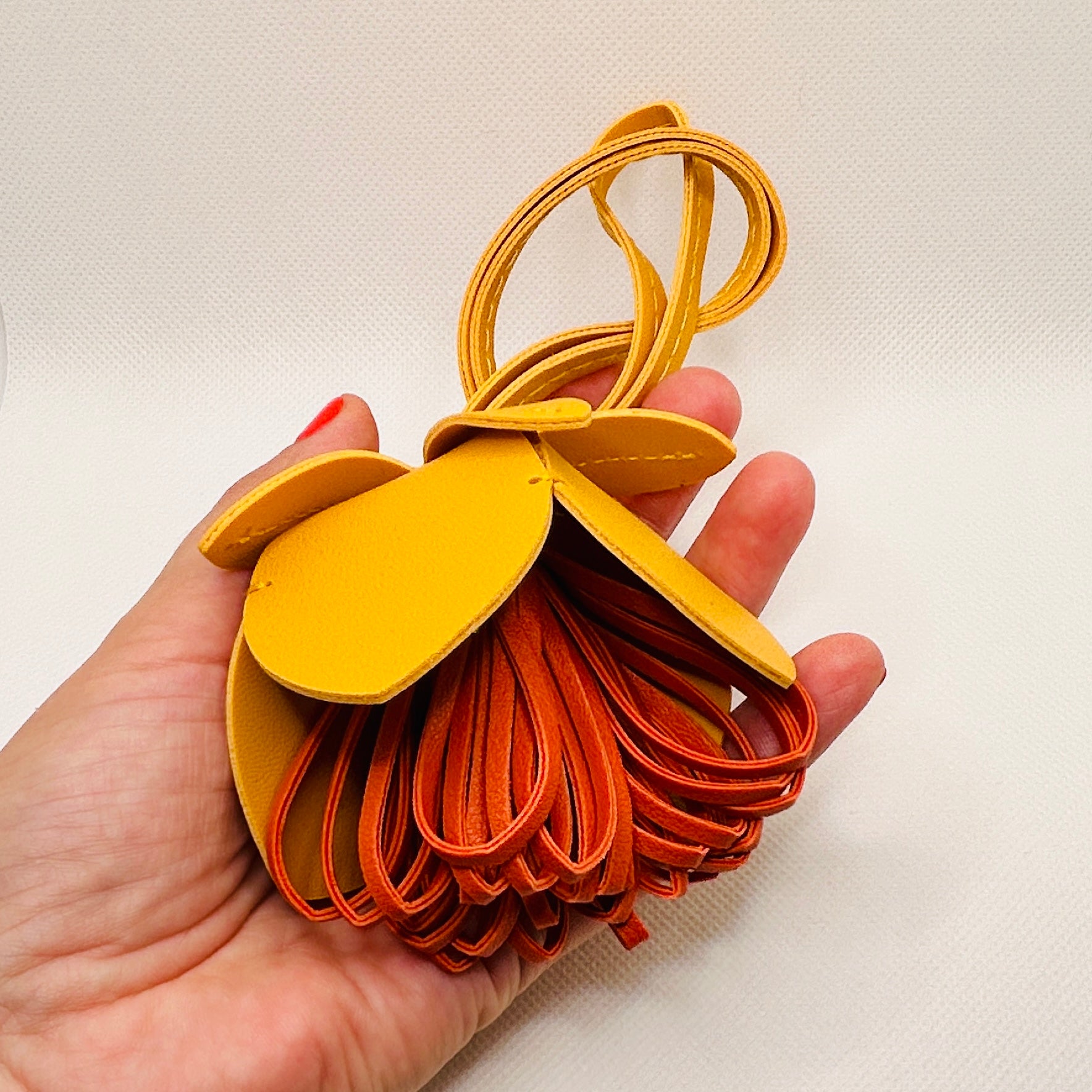 Blumenknospe Taschenanhänger Kunstleder. Florales Accessoire für Frühling & Geschenkideen