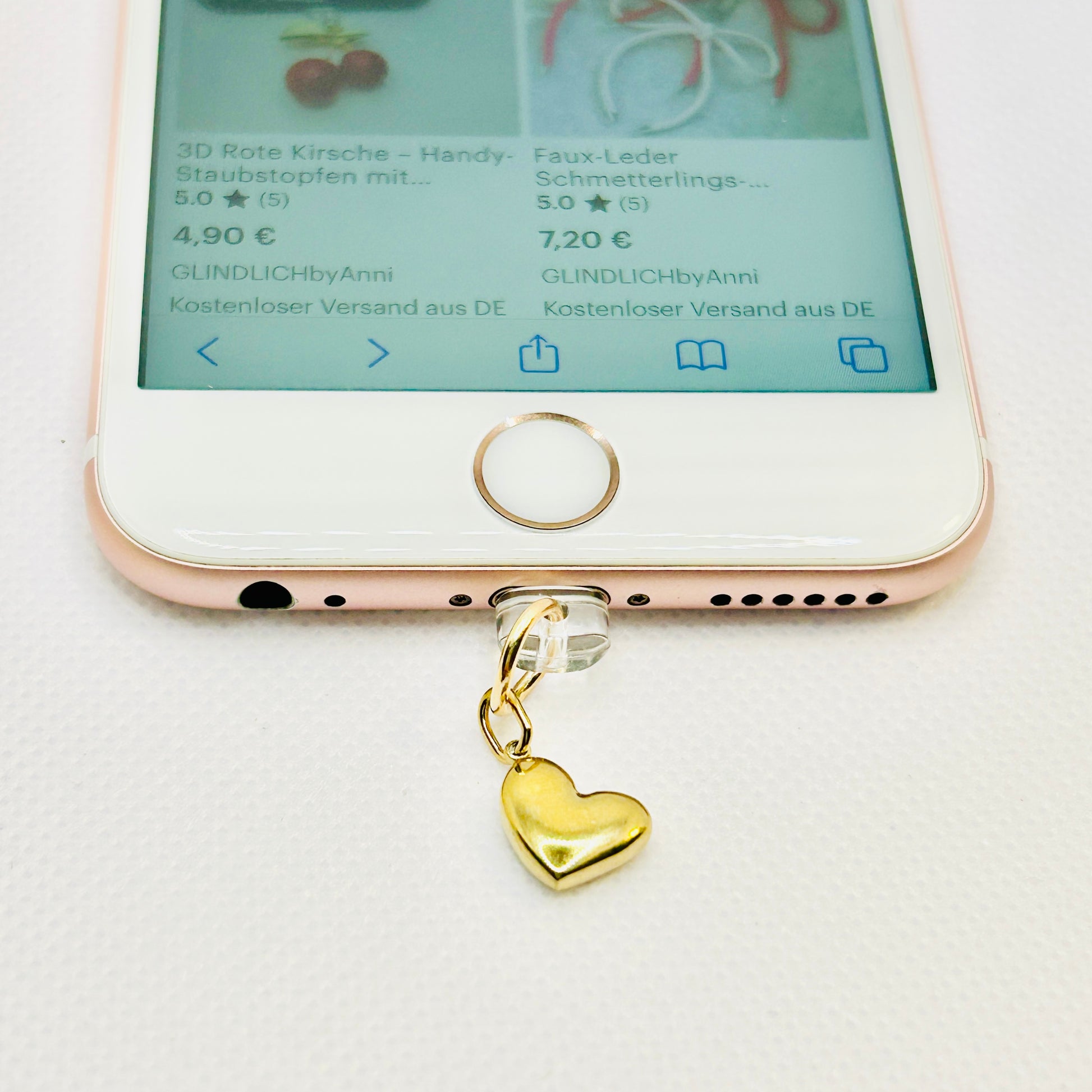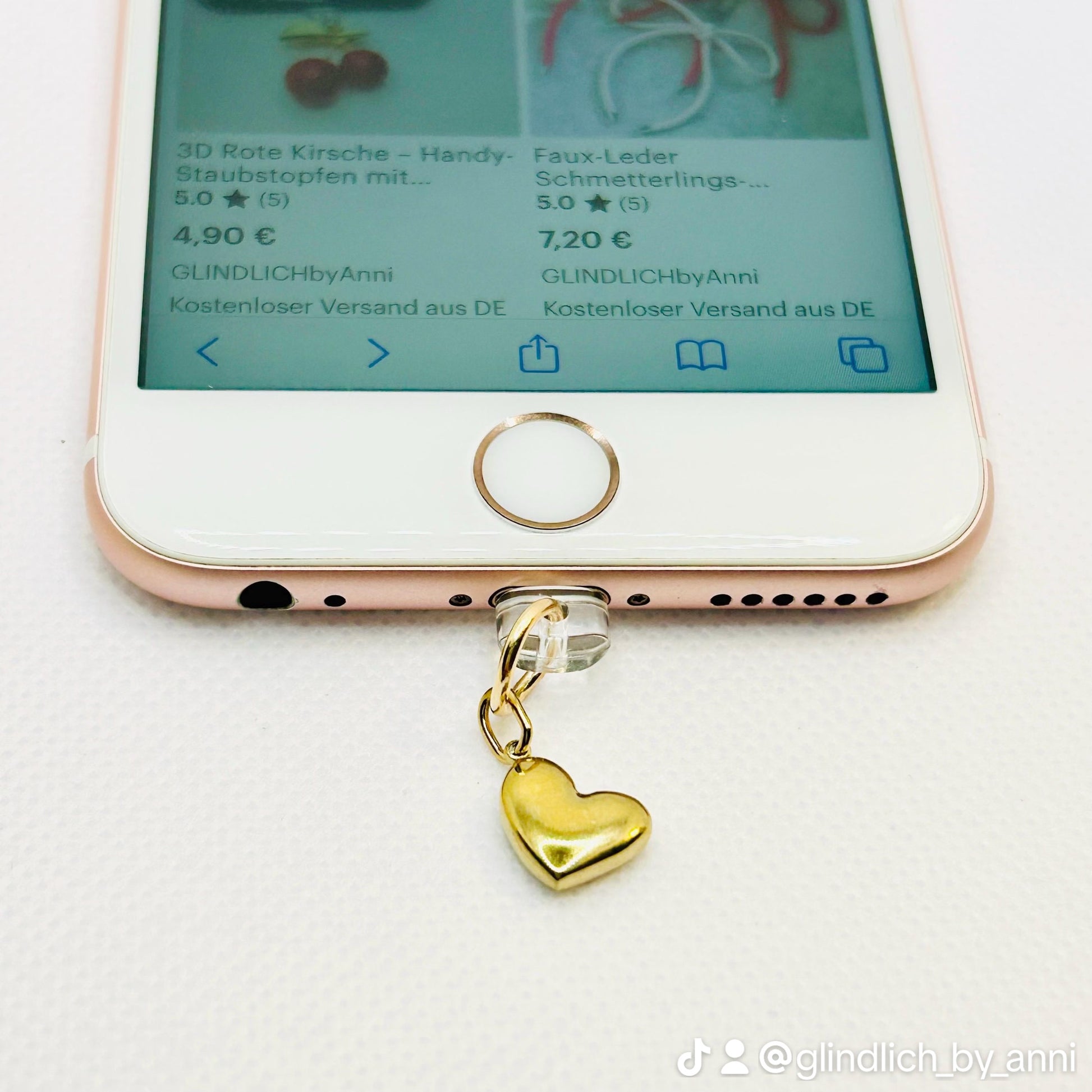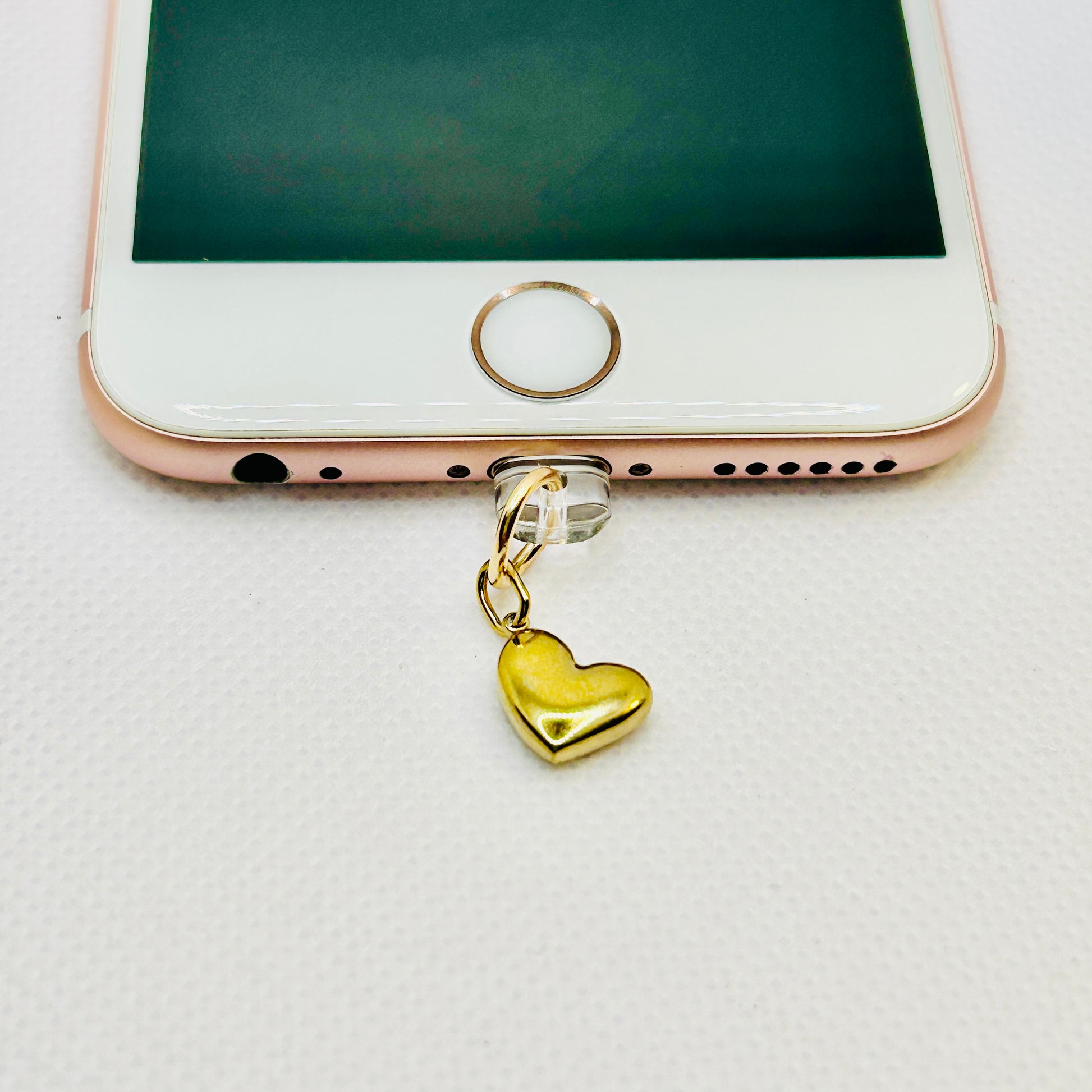 Vergoldeter Herz Charm USB-C oder Lightning. Minimalistisches Accessoire aus Edelstahl für Smartphone & Case