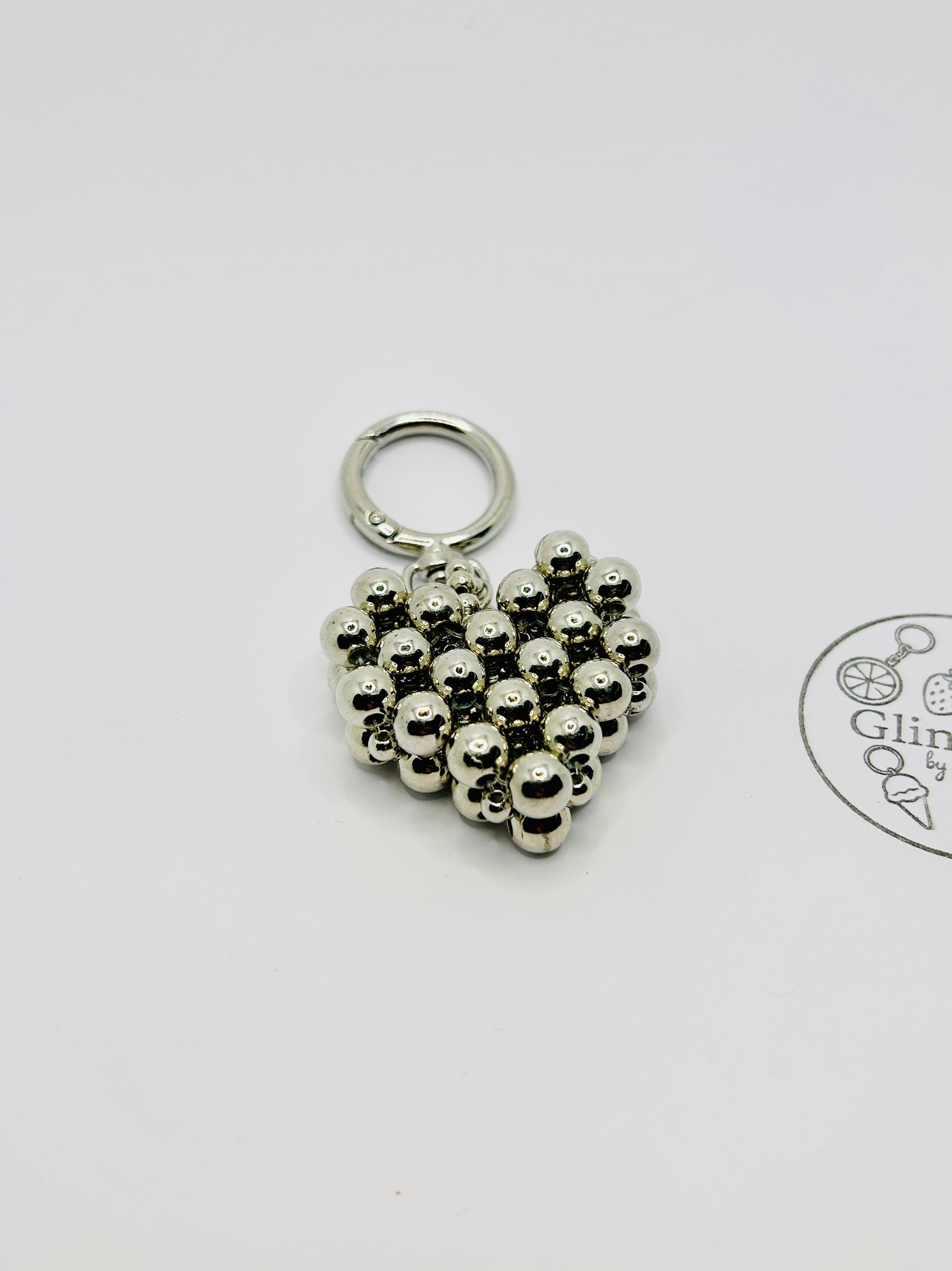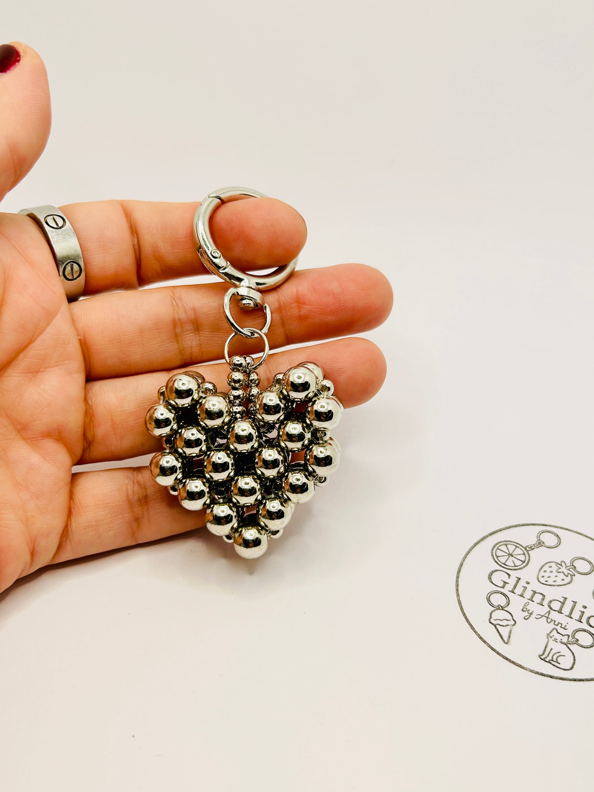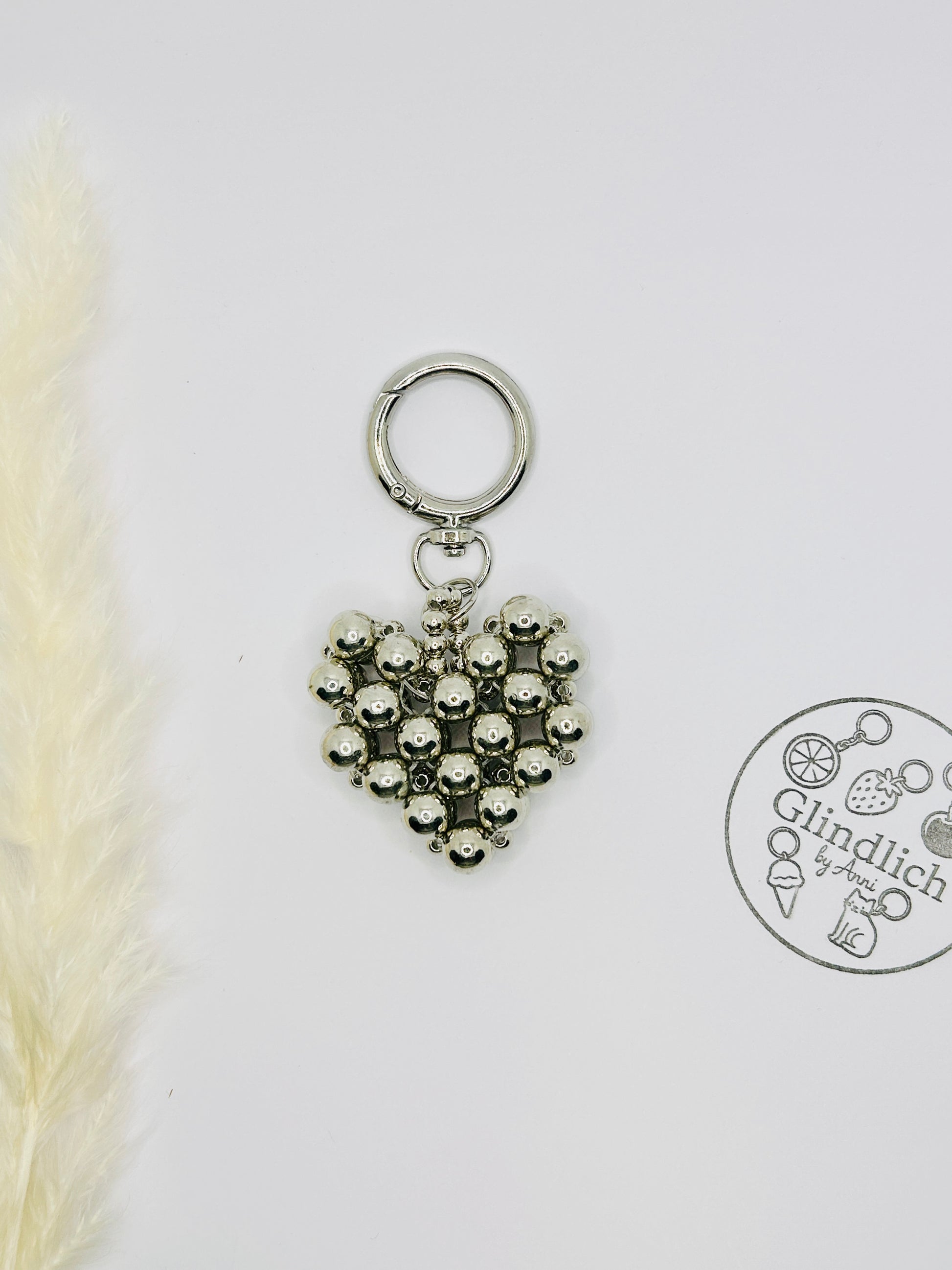 Silber Herz Taschenanhänger. Metallperlen Schlüsselanhänger. Modernes Accessoire für Tasche oder Rucksack