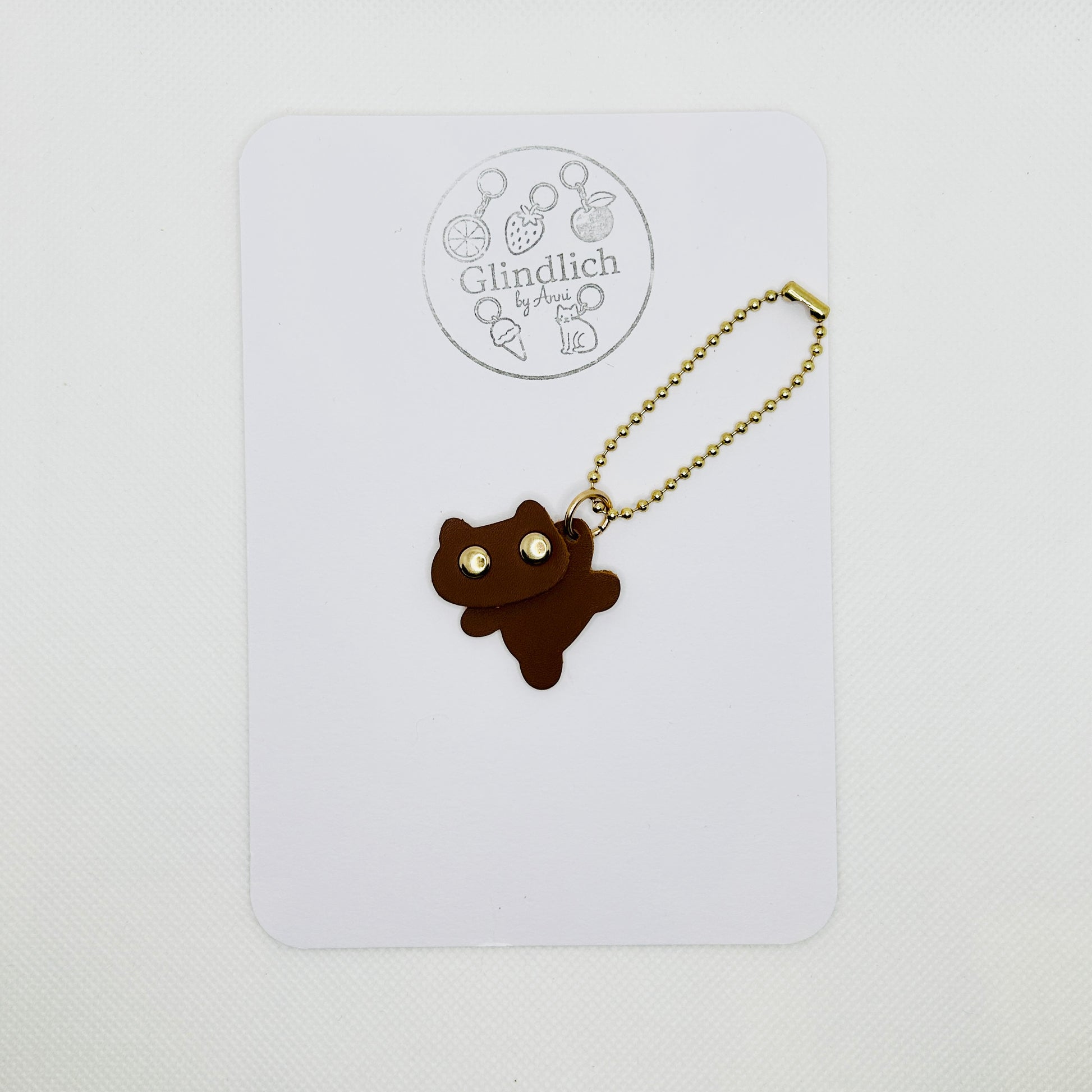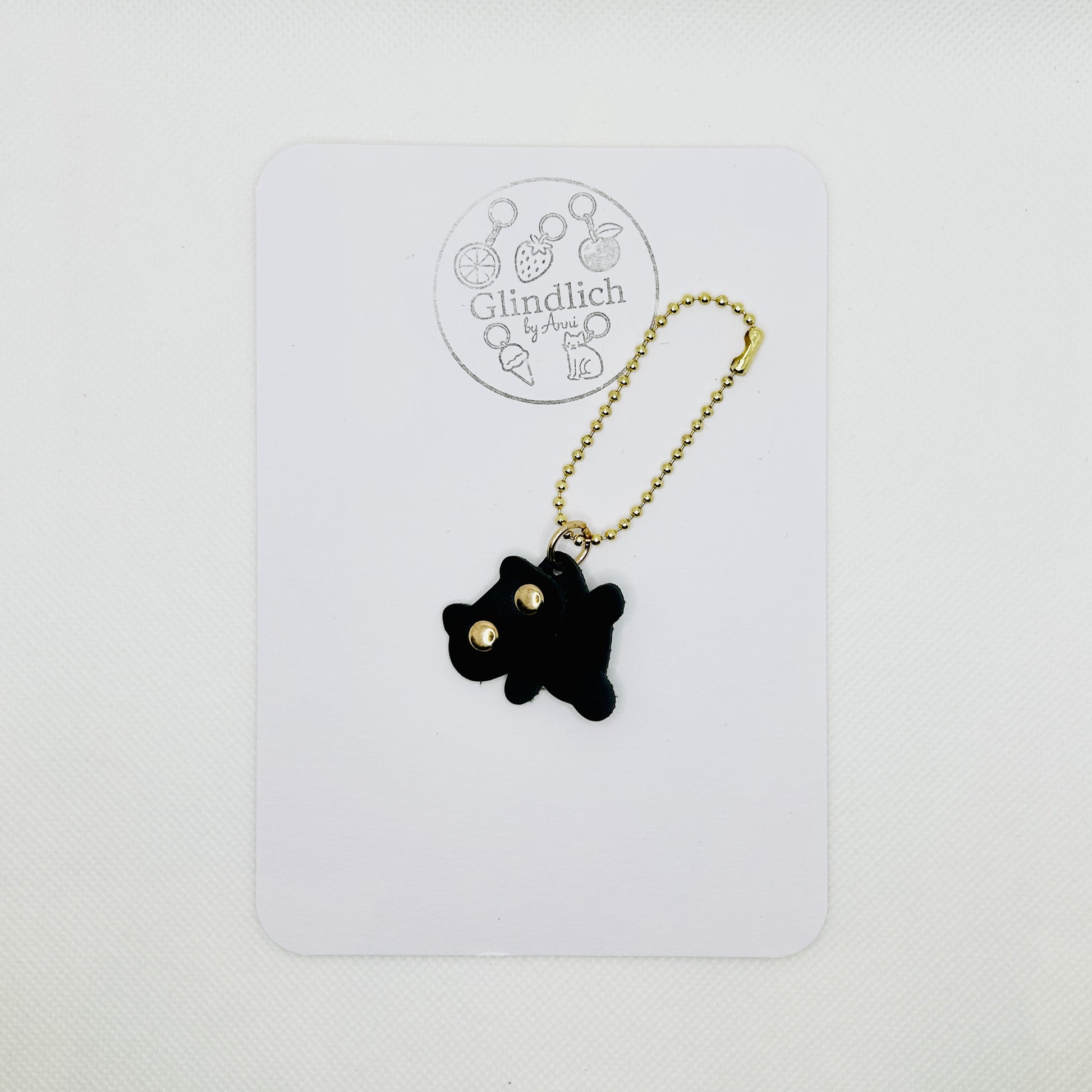 Wir gestalten unsere Accessoires so, dass sie vielseitig tragbar sind: als Schlüsselanhänger, an der Tasche oder am Rucksack. Das Design der Katze mit ihren Nietenaugen wirkt minimalistisch, bleibt aber charmant.