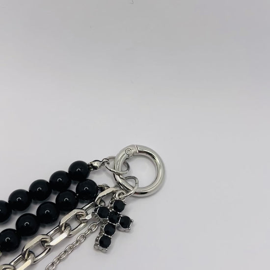Perfekt für Shopper, Handtaschen oder Rucksäcke. Der Anhänger ist stabil verarbeitet und bietet mit seinen verschiedenen Elementen eine spannende Tiefe, ohne überladen zu wirken. Ob klassischer Look mit weißen Perlen, ein schwarzer Bead-Strang für mehr Ausdruck oder die zeitlose Variante mit silbernen Metallkugeln. Jede Version macht eine Tasche sofort einzigartig.