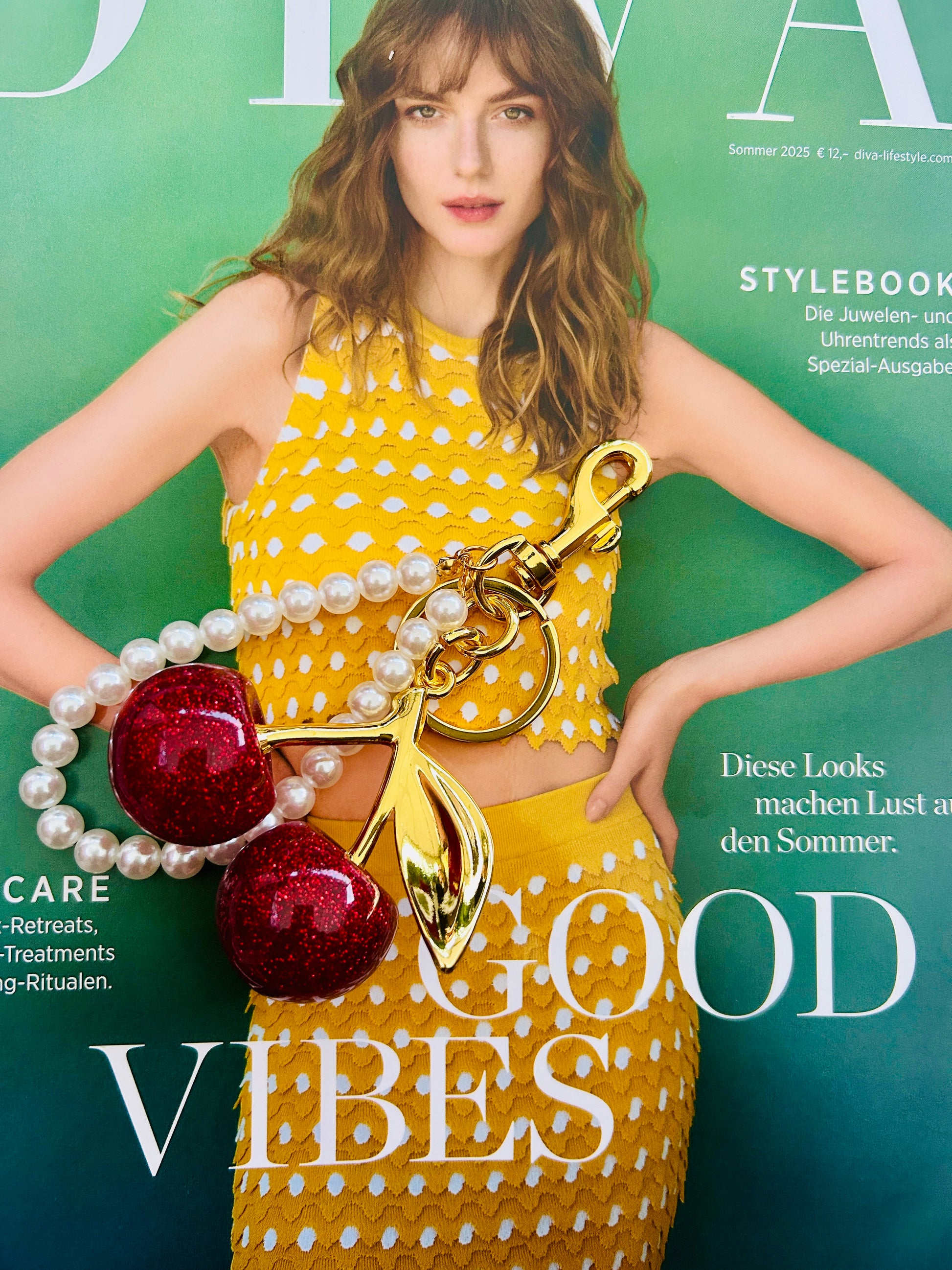 Besonders hübsch an schlichten Taschen oder in Kombination mit unserem Cherry-Smartphone-Charm.