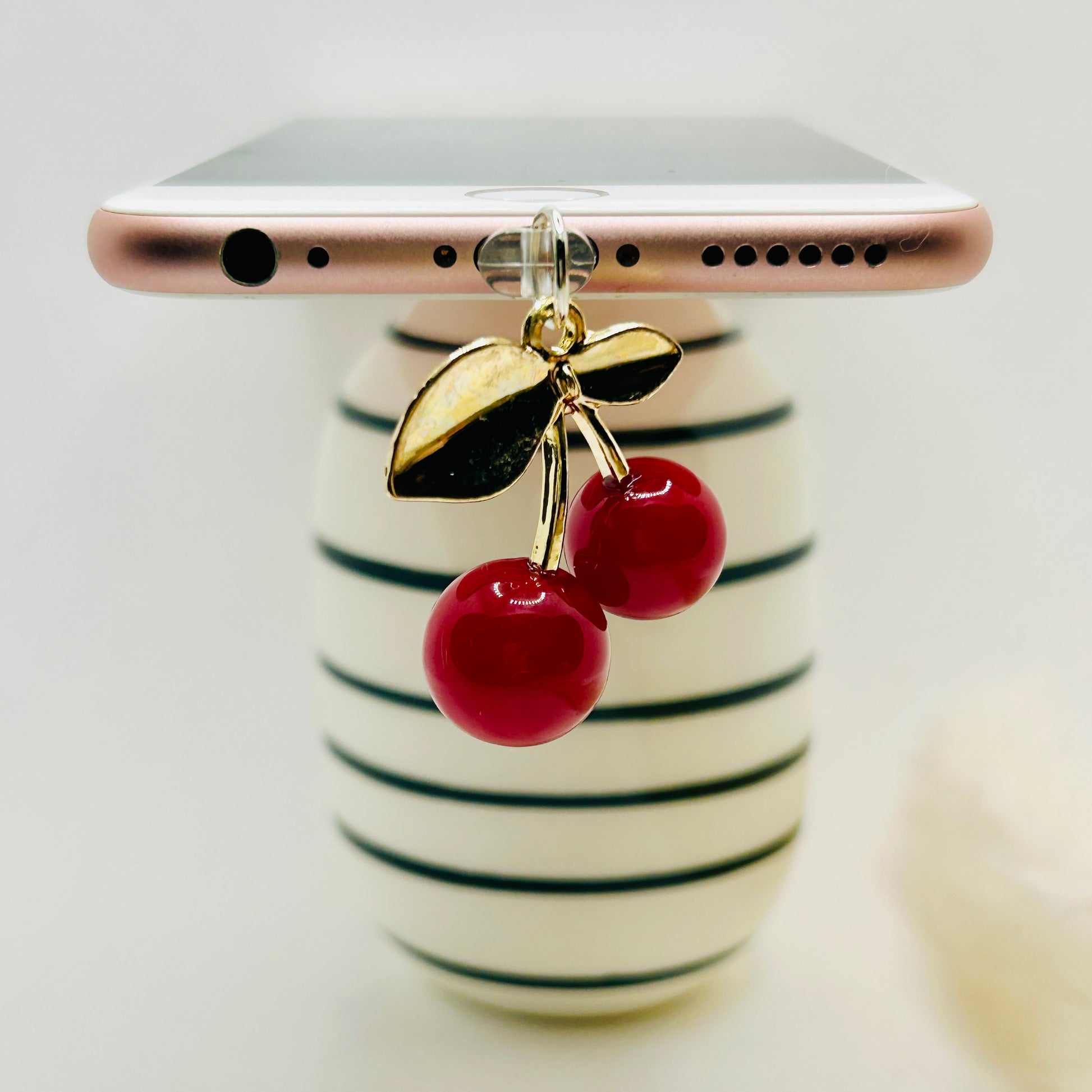 Kirsche Staubschutz USB-C oder Lightning. Stylisches Handy-Accessoire im 3D-Look
