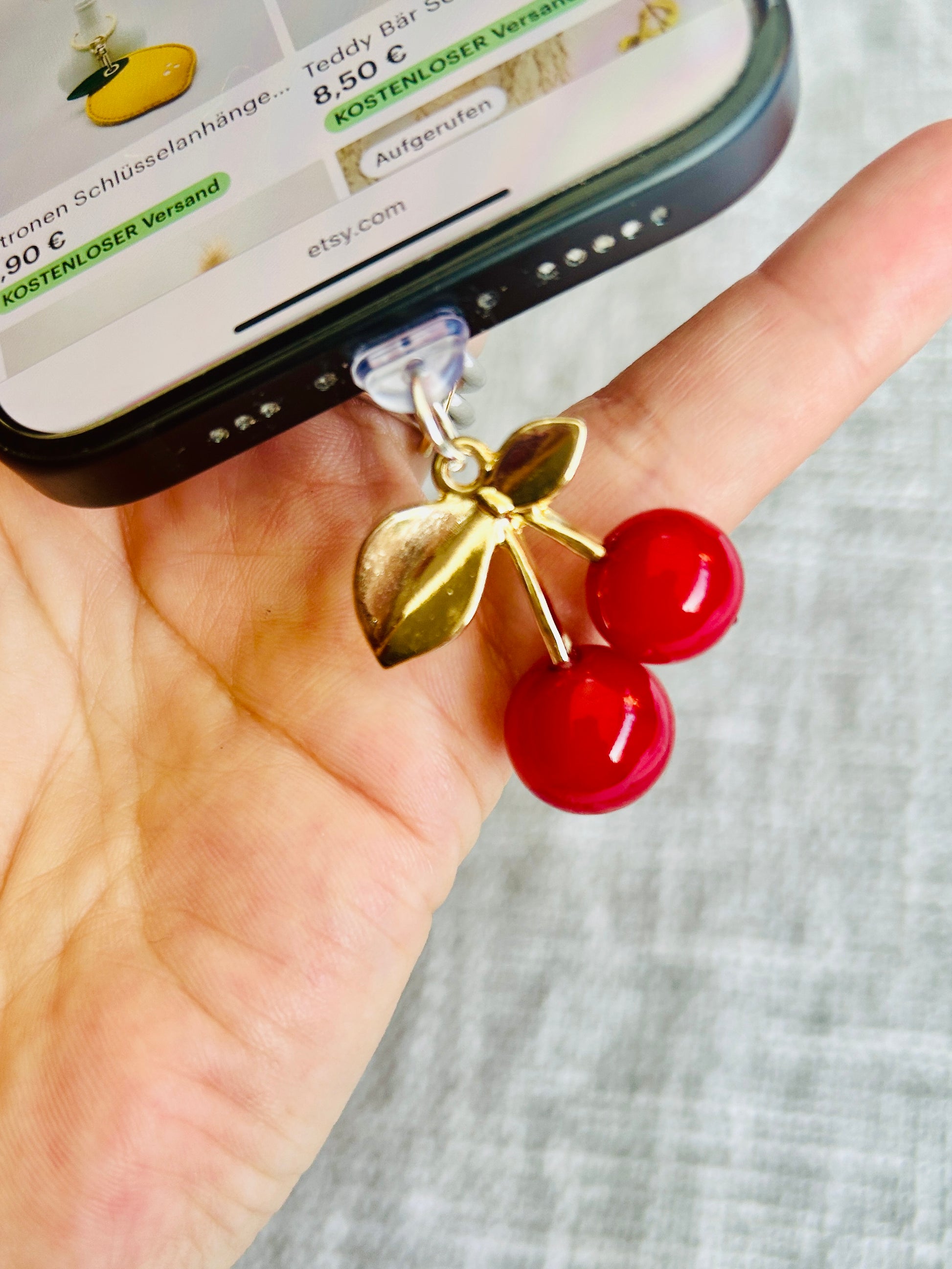 Süße 3D-Eleganz für dein Smartphone! Dieser wunderbar detaillierte Kirsch-Staubschutz bringt Farbe, Charme und praktischen Schutz an dein Gerät.