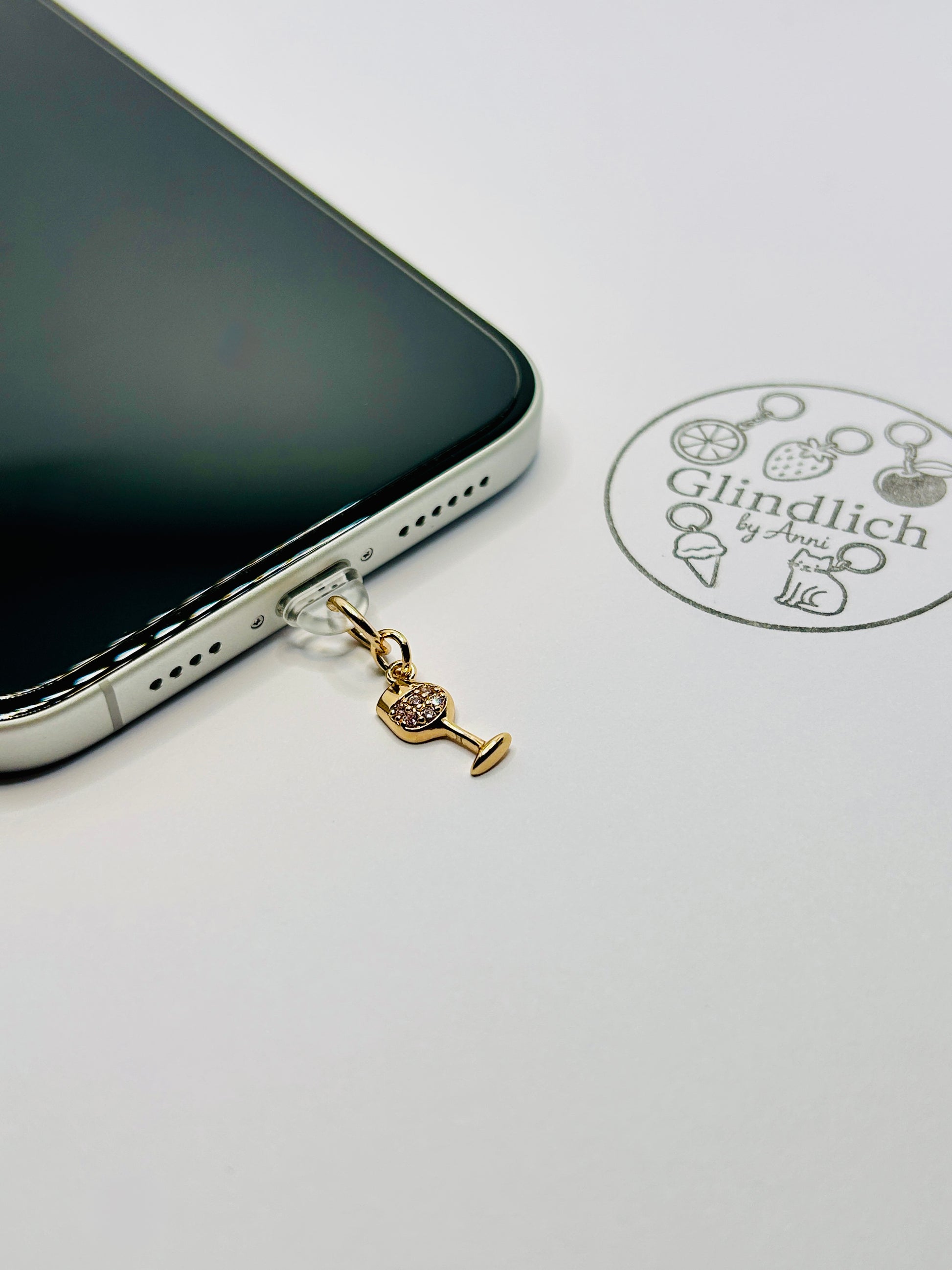 Cocktailglas Charm aus vergoldeten Edelstahl. Minimalistisches Accessoire für Smartphone & Case.
