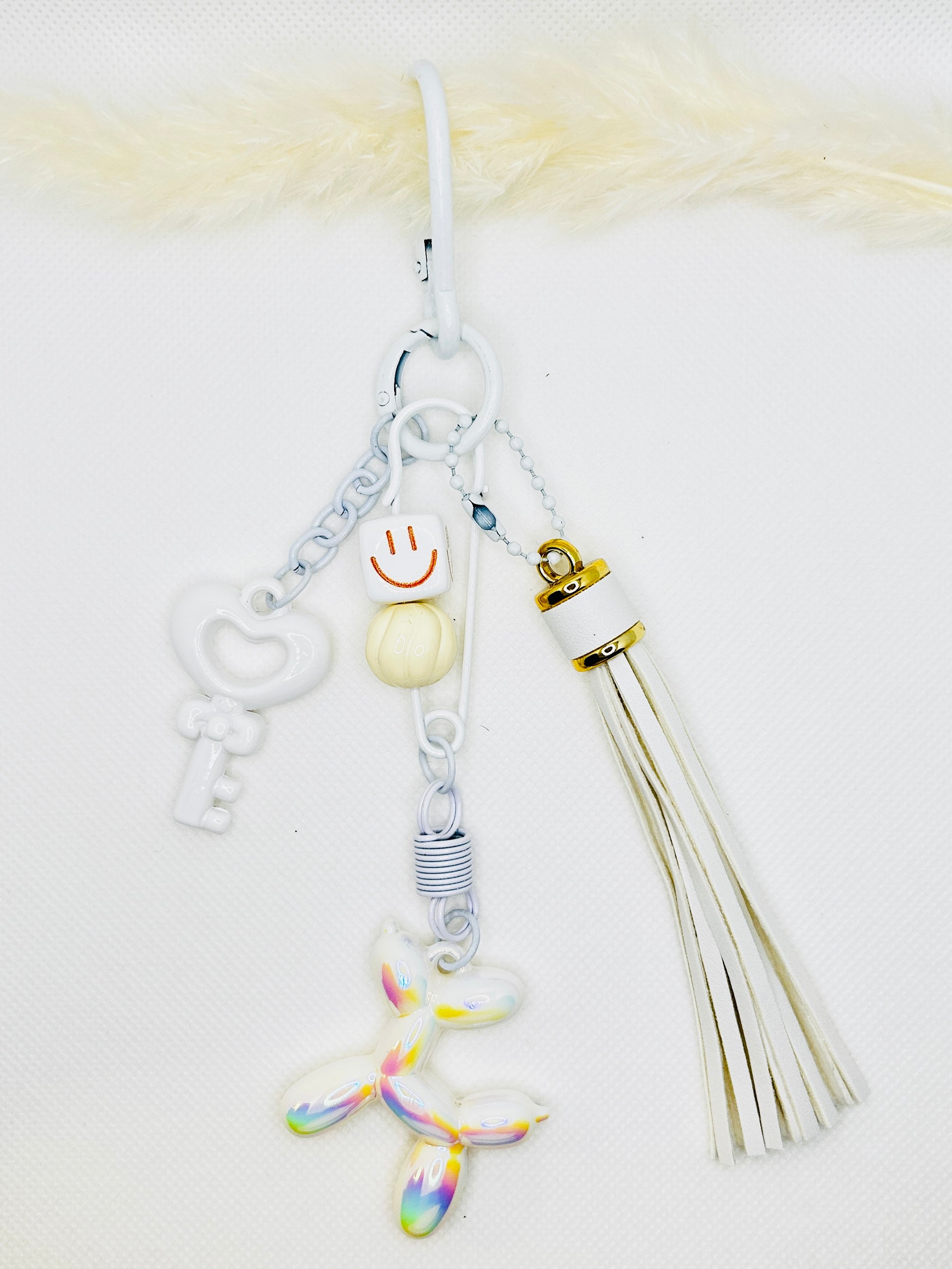 Ballonhund Schlüsselanhänger mit Tassel. Bunter Mini-Charm für Tasche, Schlüssel & Geschenkideen