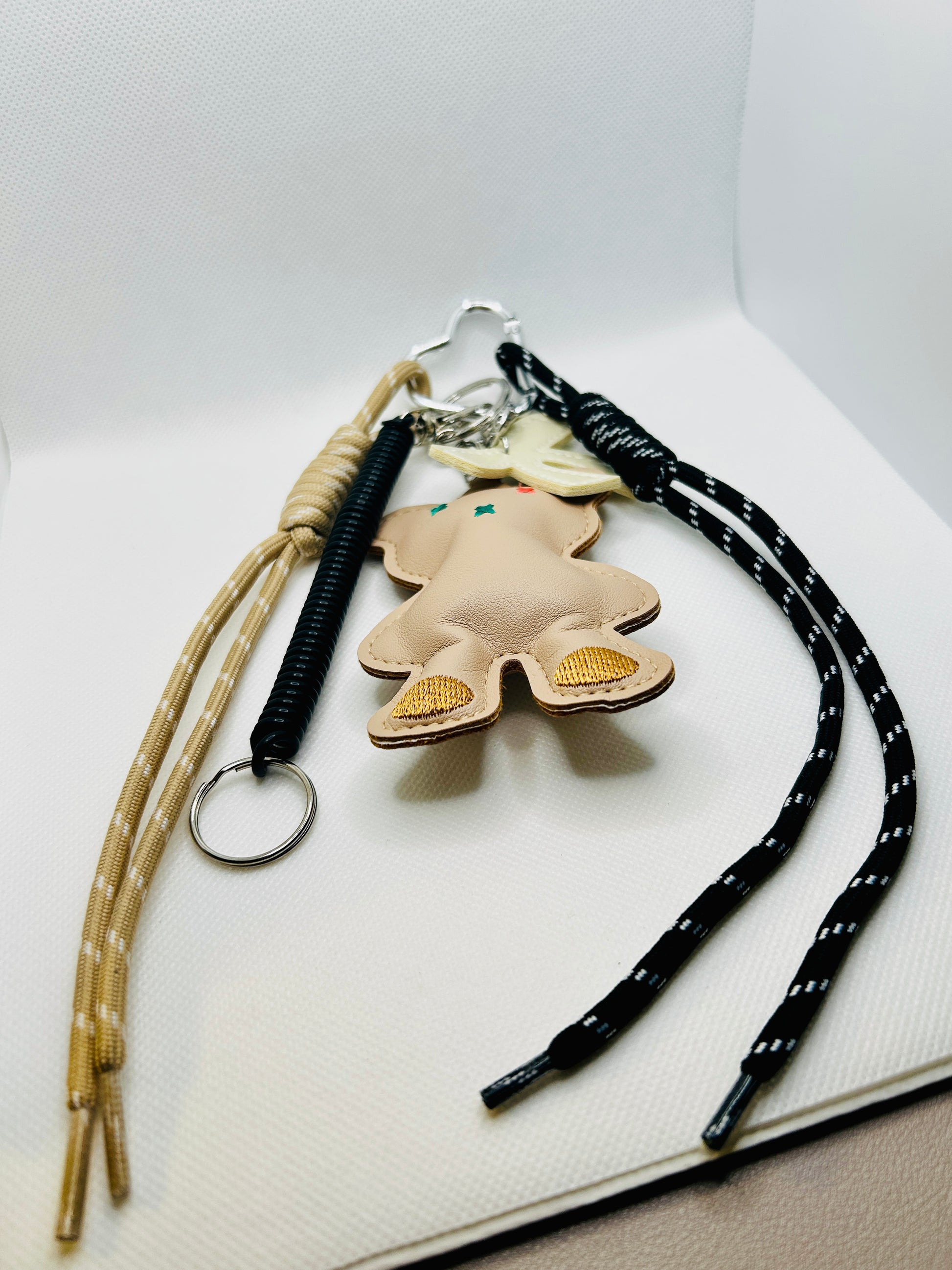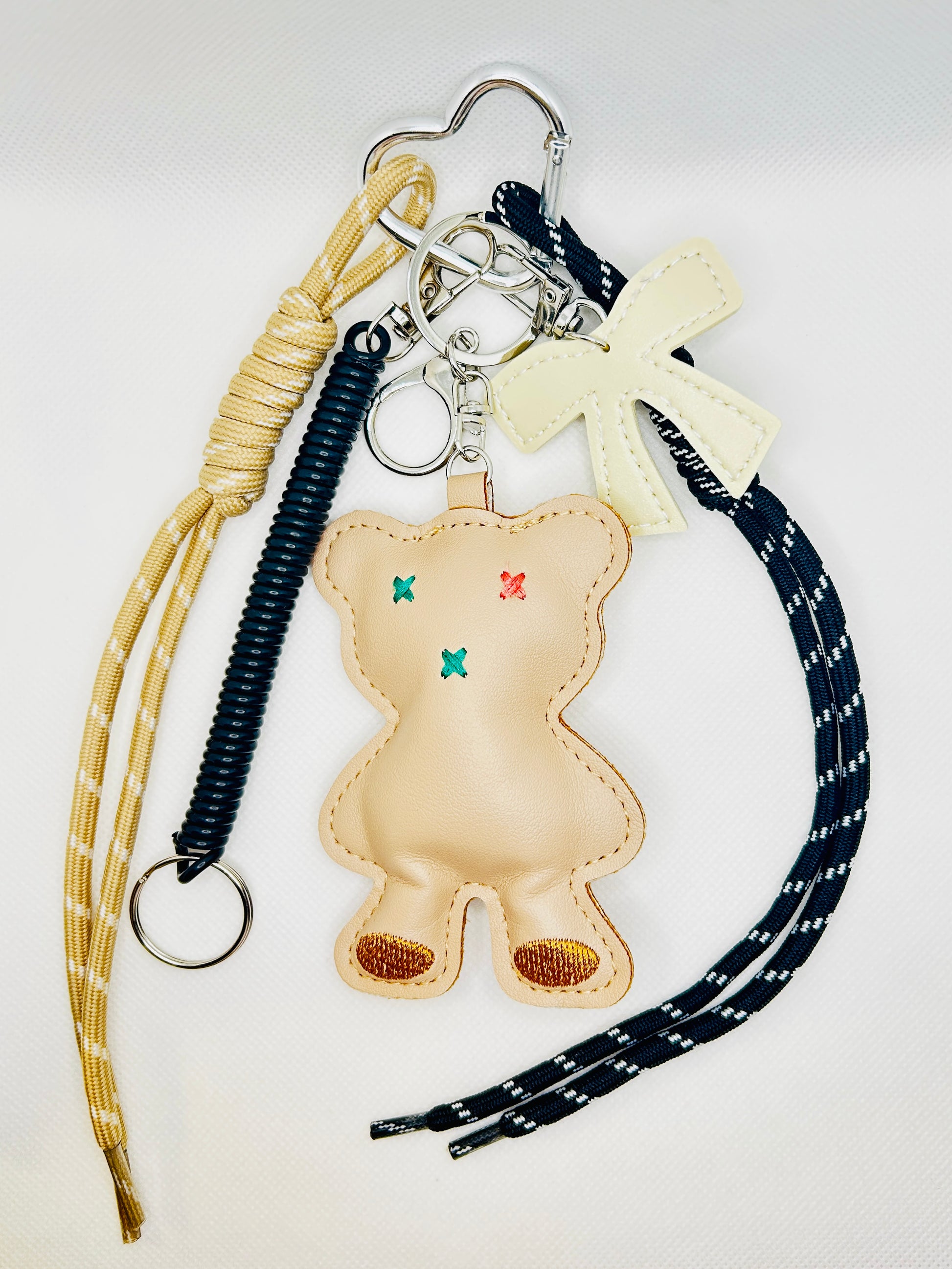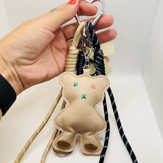 Teddybär Schlüsselanhänger mit Seil – Weiches Kunstleder-Accessoire in Beige & Pastelltönen