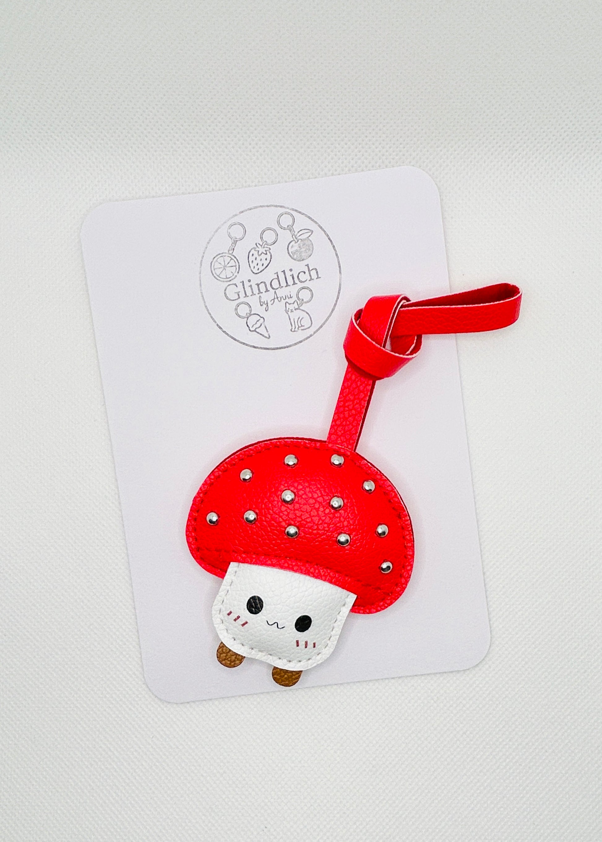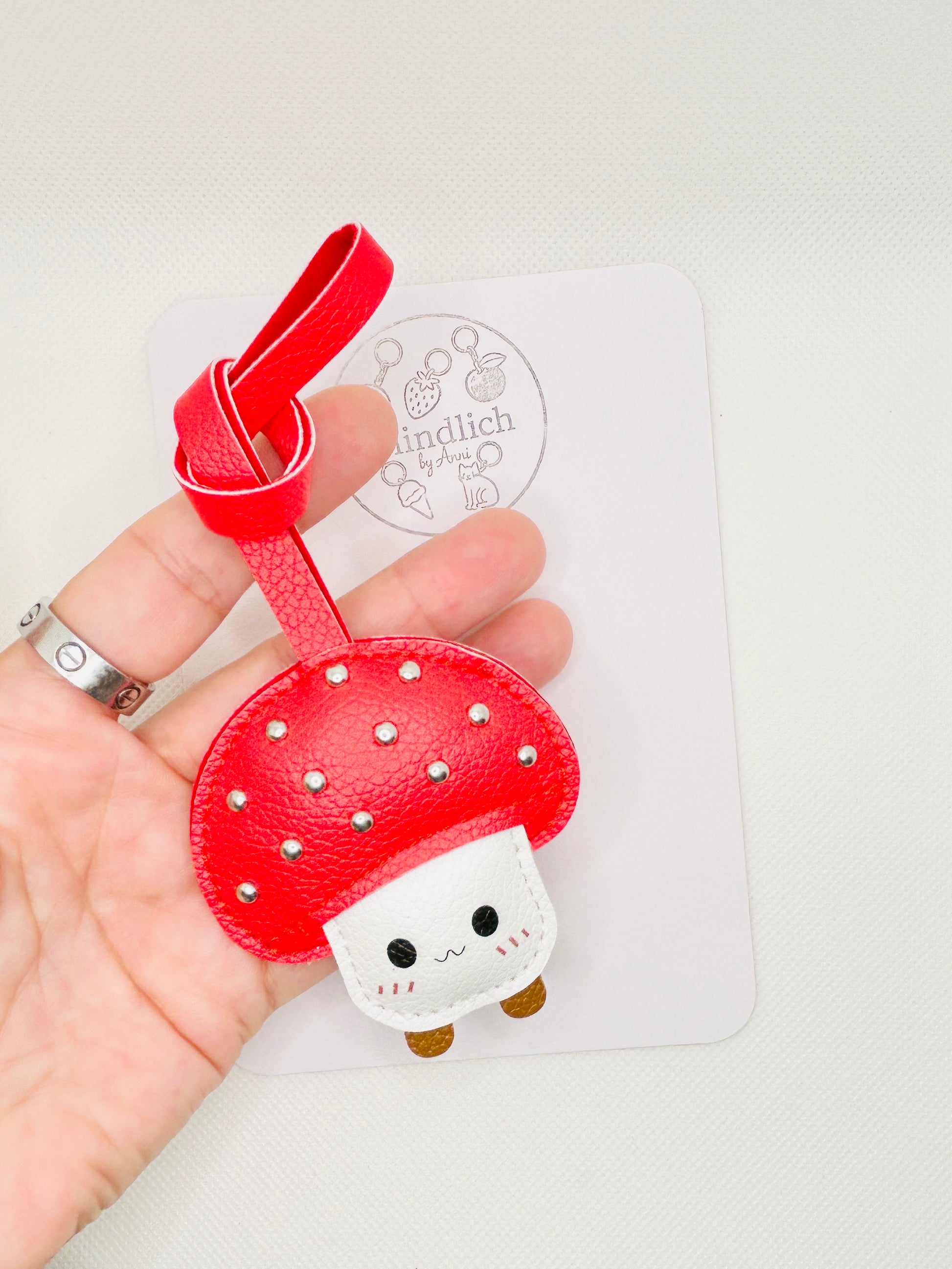 Roter Pilz Schlüsselanhänger. Taschenanhänger Kunstleder Optik. Verspieltes Geschenk Damen. Deko für Handtasche Rucksack Schlüssel