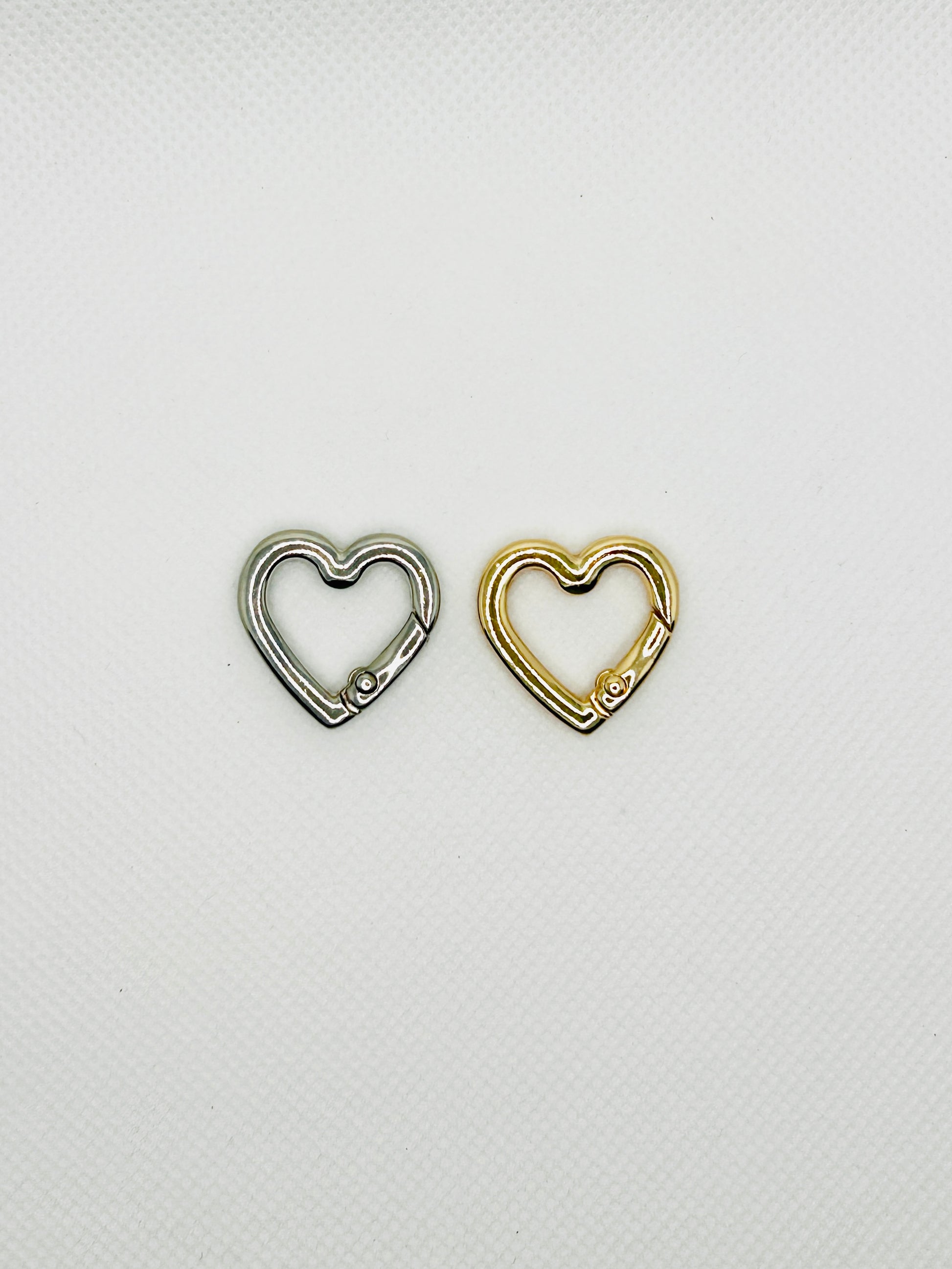 Der Herz Karabiner lässt sich leicht öffnen und schließen und bietet sicheren Halt für Charms, Schlüssel oder Deko Anhänger. Erhältlich in klassischem Silber oder elegantem Gold passt er zu jedem Stil und macht deine Anhänger noch persönlicher.